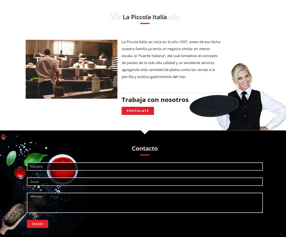 Cadena de restaurantes especializados en fusión de comida italiana y chilena, con atención online y presencial.